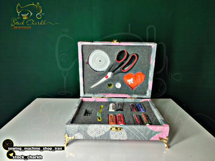 به همراه لوازم(قیچی+بشکاف+ماسوره+متر+سوزن+سوزن ته گرد و..)